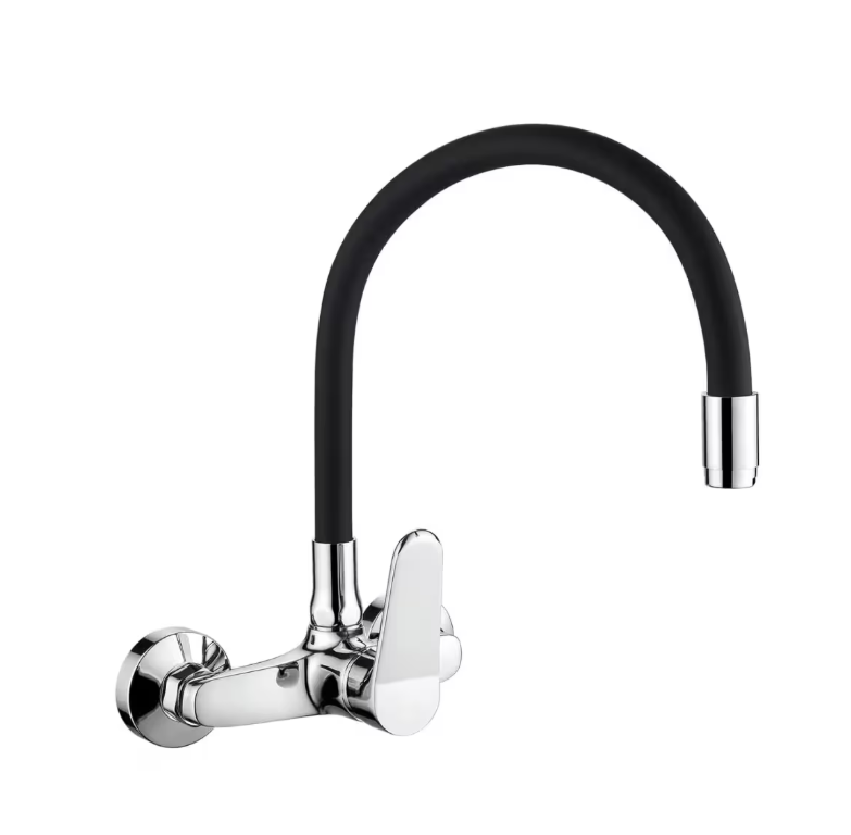 GRIFO COCINA PARED PICO ALTO FLEXIBLE NEGRO A 20cm CROMO DMC